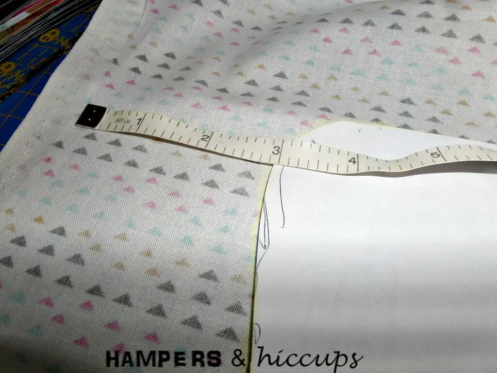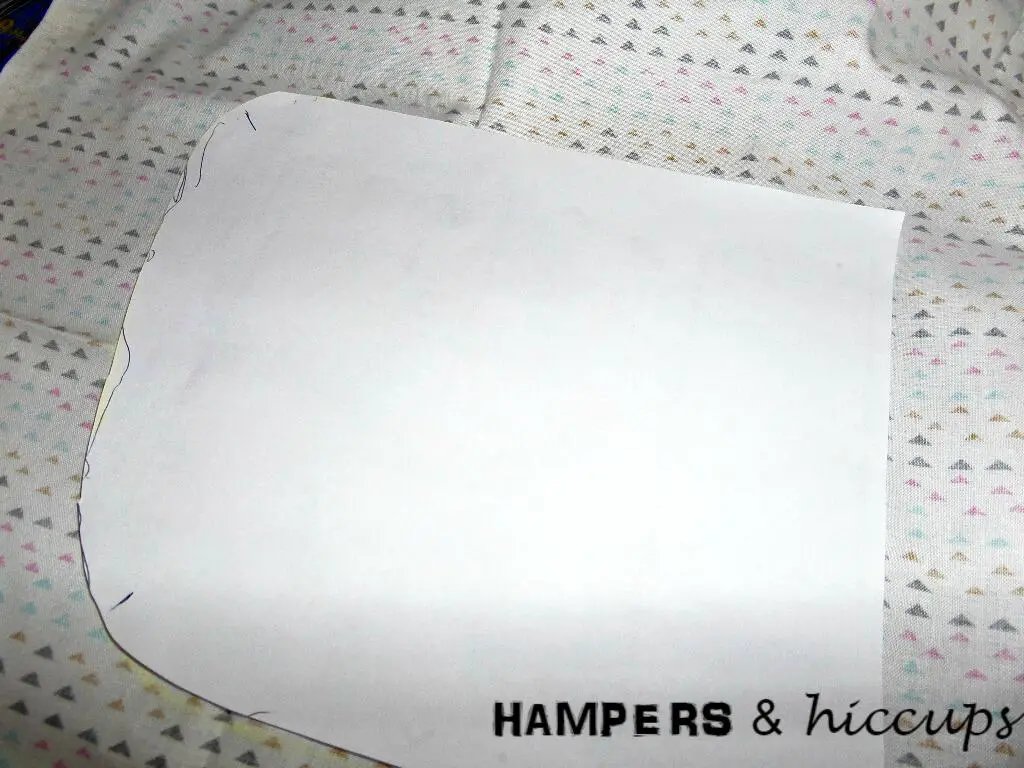 Measure 3″ away from your traced line all the way around. The extra 3″ is to allow for the height, folding, ironing + elastic channel.