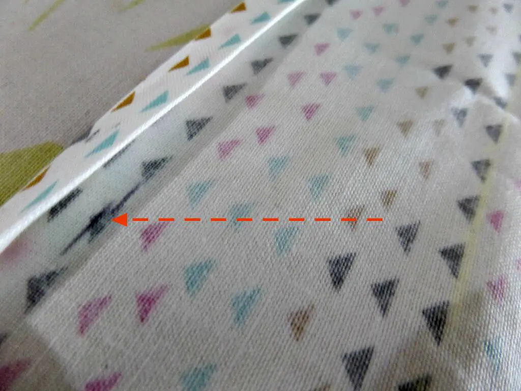 Then repeat the folding and ironing up to the next line. You should be left with a double fold, hiding the raw edges. You should have 2″ from the mark of your folds to the innermost original trace line.